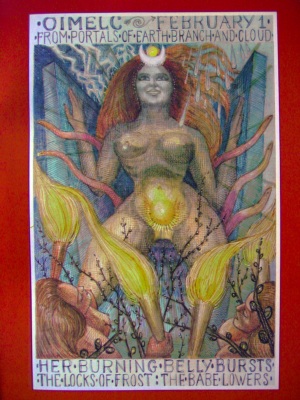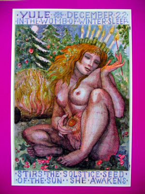The Festival of First Awakening. From within the Womb of the Year's longest night, the Holy Infant thrusts lustily. The Goddess awakens in gloom of numbed Earth. As the Sun turns North once more, Life jubilantly strikes its new spark from the naked Elements.