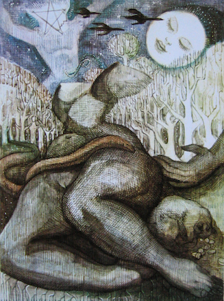 As the hours pass, the stars of the heavens seem visibly to change position and pirouette about. The terrestrial stars of the children’s lamps merge with those over the outstretched Fays. In their fused breath, the Celebrants fuse into one shuddering, penumbral form: Mother Earth. She, in turn, merges in the teeming ground of Deep Heaven. The limitless soil of all stars lies yearningly fallow, titanic nebula limbs akimbo in sweet, innocent longing. Then shimmers the moment without image, the absolute Wedding of the Living Dark, wherein every remote immanence is Wild Virgin Bride Forever for the first time pressing into every other remote immanence.
