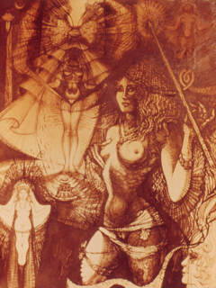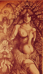 Into these diffuse potencies, sylvan sorceresses project their own dream & designing will. Then deceased spirits of the community, through chant-channelled passages of collective dream, may approach the light-wakeful world; they come from the dark, death side of swarming soul reservoirs. These soul reservoirs well up into numinous trees, stones, lakes & springs. They approach the living in linear time through all the enchanted valves & vulvas of earth-entry.