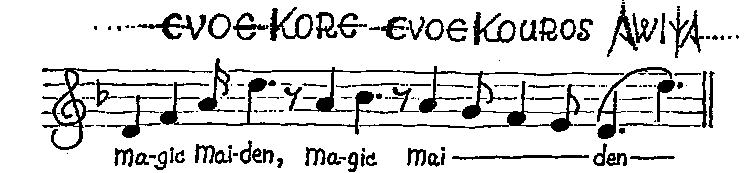 Paradisal Joy - hieratic posture of Greeting the Goddess. Hands swing gracefully outwards, sideways, and upwards to level of shoulders (6) - the Crescent Moon. Pause...muse... The Kore Incantation may be intoned while holding this position.